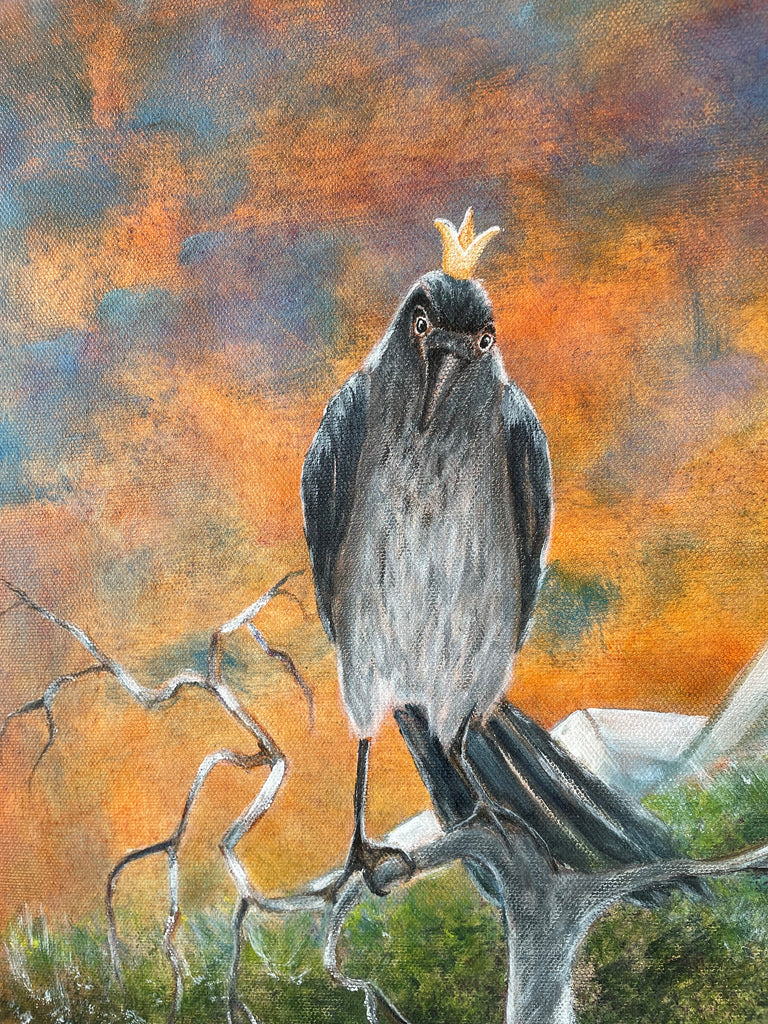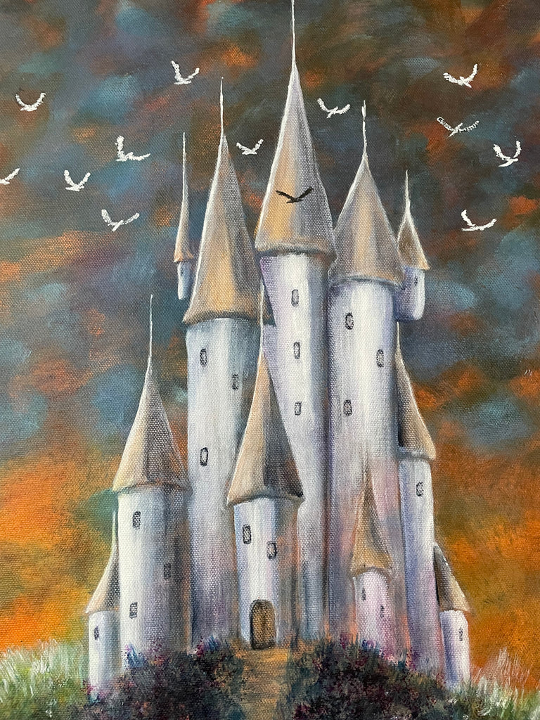 i varje penseldrag. Det surrealistiska slottet och den vaksamma kråkan
