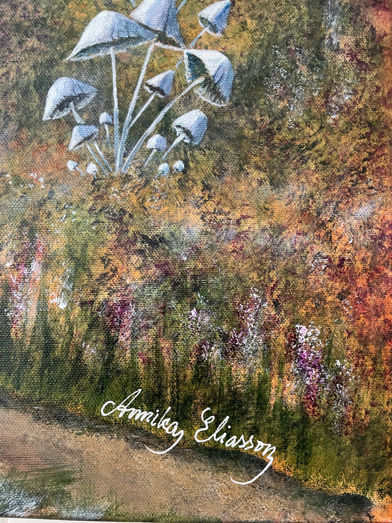 Akrylmålning på canvasduk 80x80x3,5 cm, färdig att hängas upp.