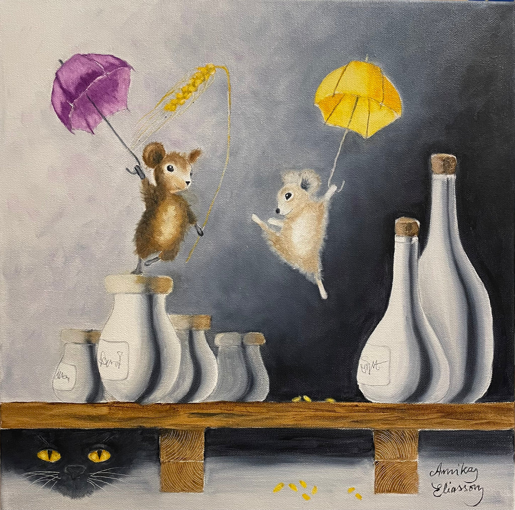Original oljemålning på 3D canvasduk med målade kanter och upphängningstråd, 40x40x3,5cm