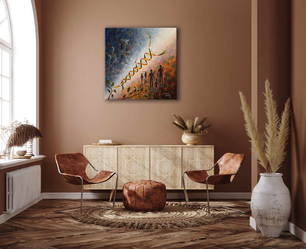 Original akrylmålning på 3D duk, 80x80x4cm målade kanter runt om samt färdig att hängas upp.