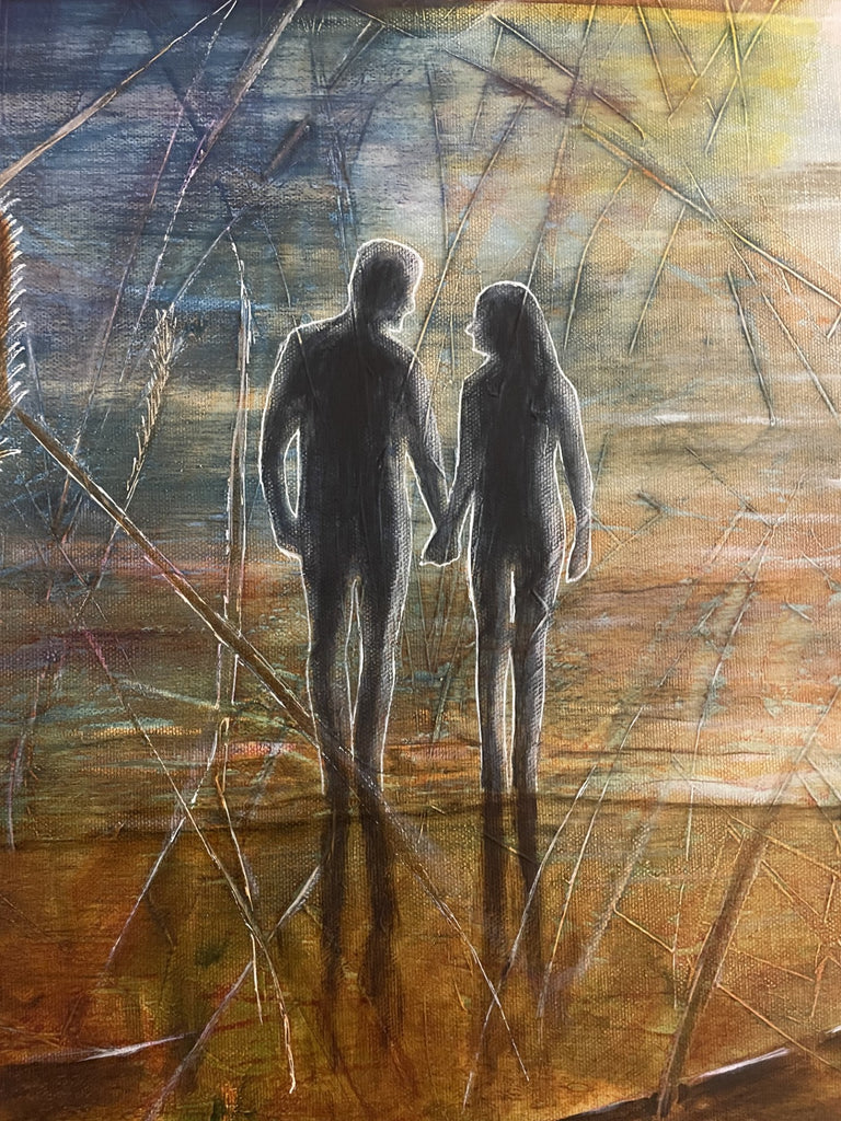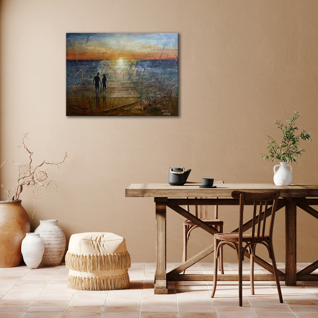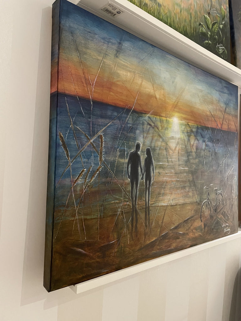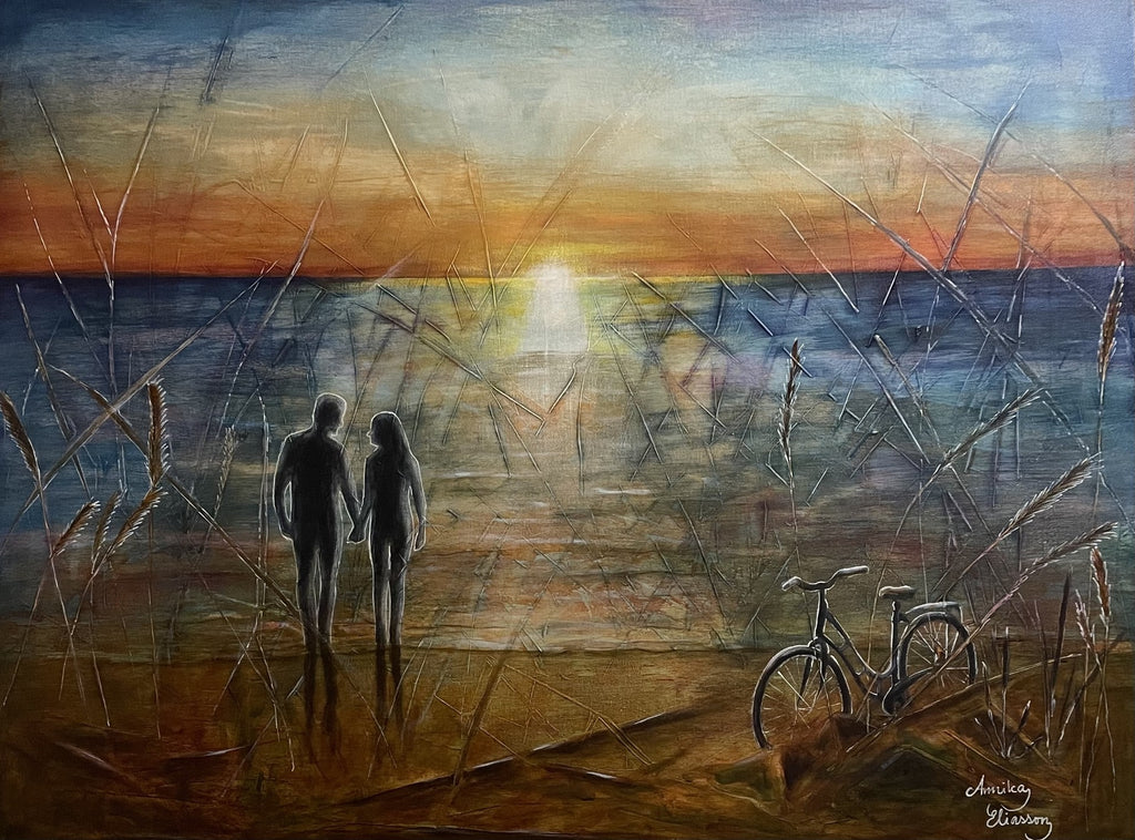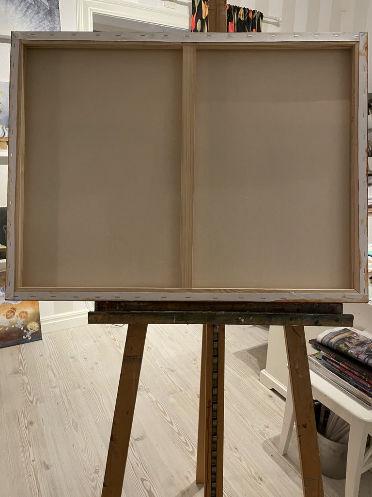Original akrylmålning på 3D canvasduk, 80x60x3,5cm med målade kanter runt om och upphängningstråd
