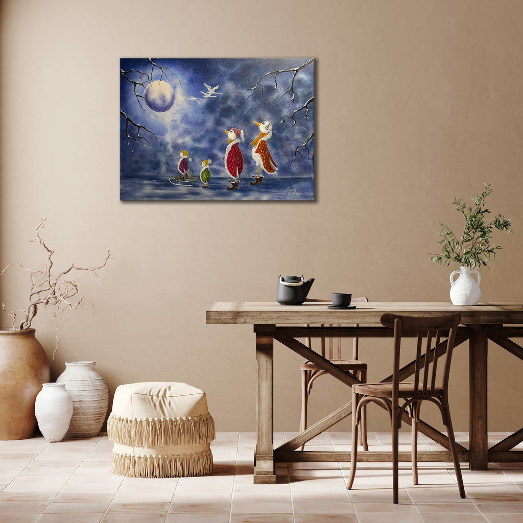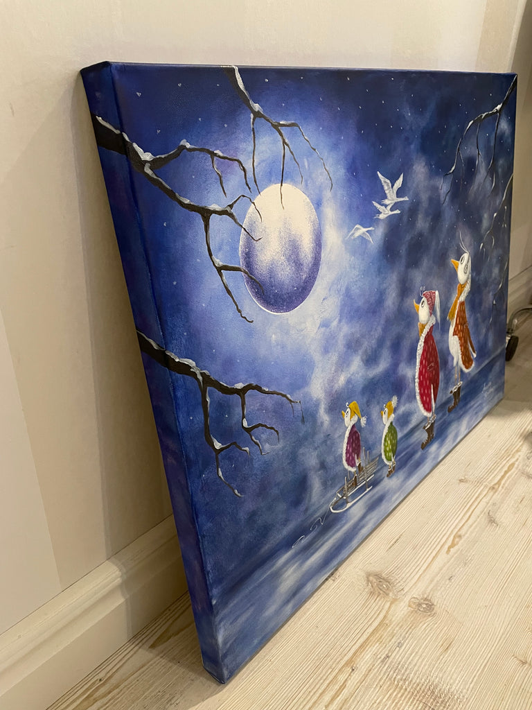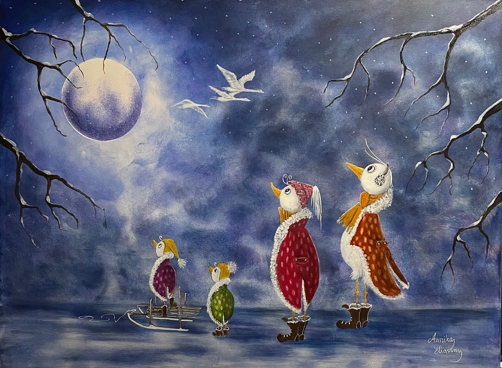 Original akrylmålning på 3D canvasduk 80x60x3,5 cm, med målade kanter runt om, färdig att hängas upp.